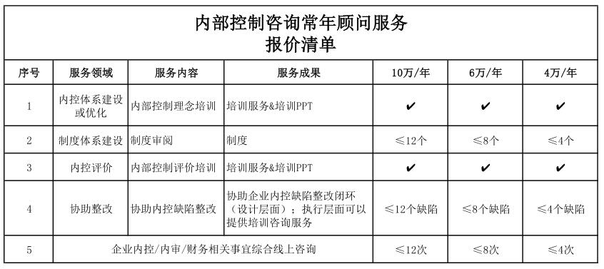 內(nèi)部控制咨詢常年顧問服務(wù)