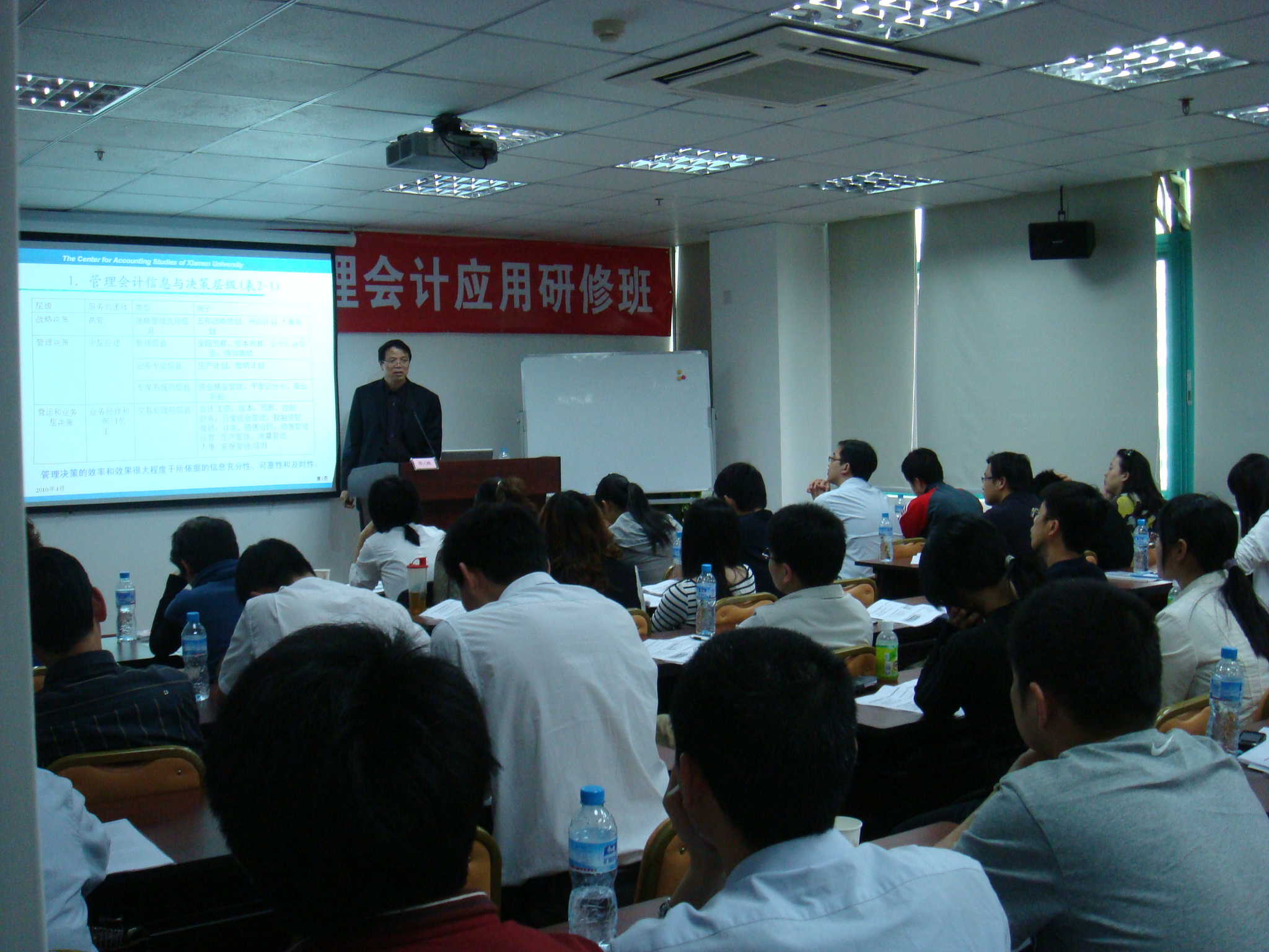 2010年4月29日下午到晚上,由廈門市總會(huì)計(jì)師協(xié)會(huì)主辦,華夏經(jīng)緯財(cái)務(wù)咨詢(廈門)有限公司承辦的“成本管理與管理會(huì)計(jì)應(yīng)用實(shí)務(wù)”高級(jí)研修班在廈門富興大廈8樓華夏經(jīng)緯培訓(xùn)室成功開(kāi)班。