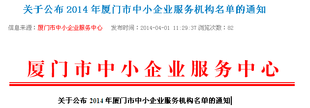 2014年廈門市中小企業(yè)服務(wù)機(jī)構(gòu)名單(共71家)