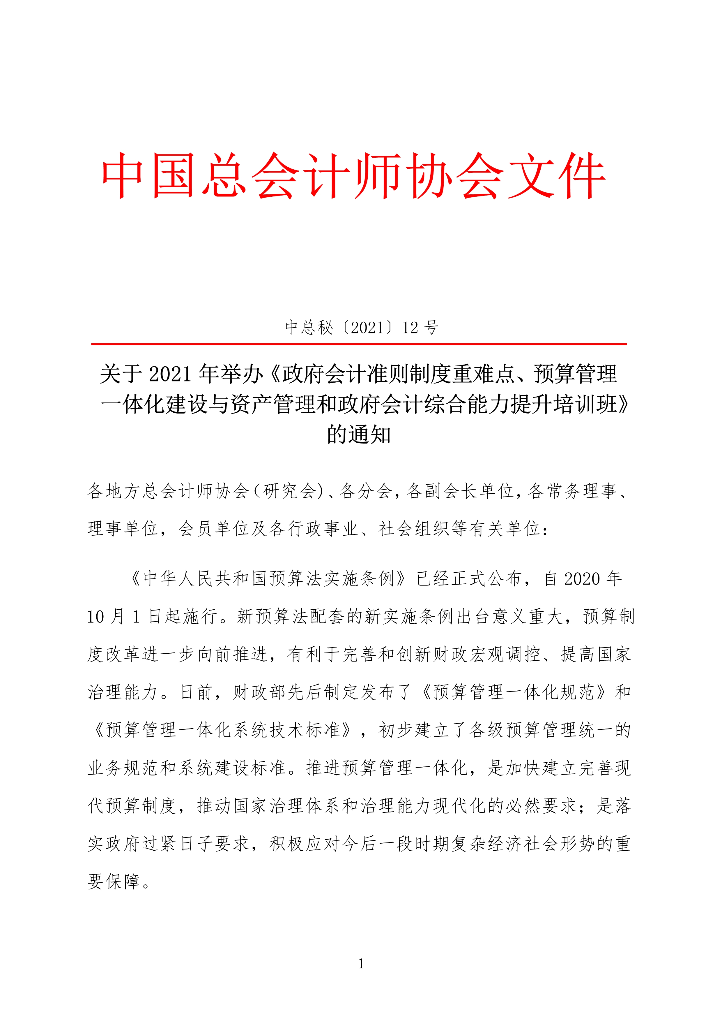 附件:中總秘[2021] 12號 關(guān)于2021年舉辦《政府會計(jì)準(zhǔn)則制度重難點(diǎn)、預(yù)算管理一體化建設(shè)與資產(chǎn)管理和政府會計(jì)綜合能力提升培訓(xùn)班》的通知/upload/edit/file/20210220/20210220163521_64580.pdf